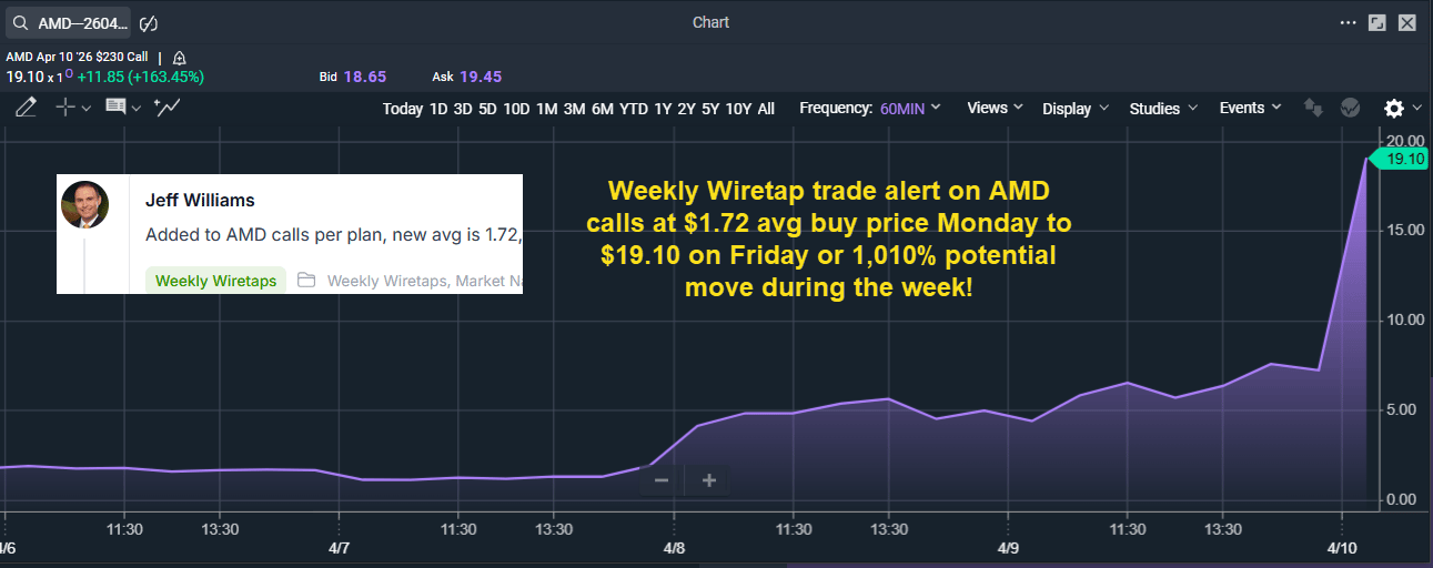 P.S. Last week was AMD at a potential 1,010%. This week is a new setup, a new opportunity, and a fresh Monday morning trade plan. In 60 minutes, members will have it. Make sure you're one of them.